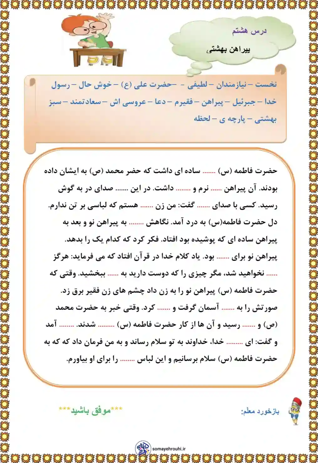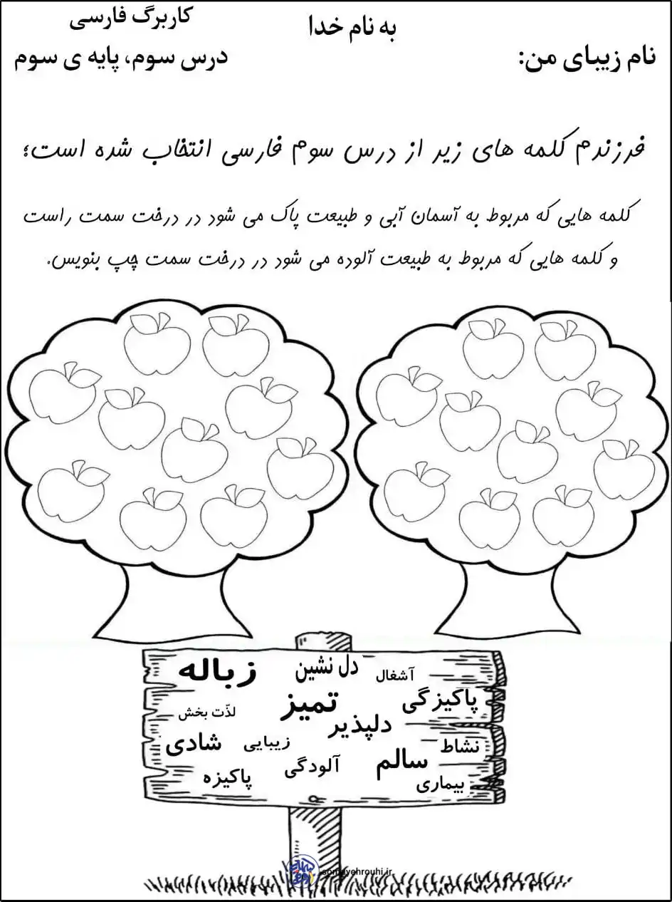 کاربرگ املای درس سوم فارسی سوم دبستان