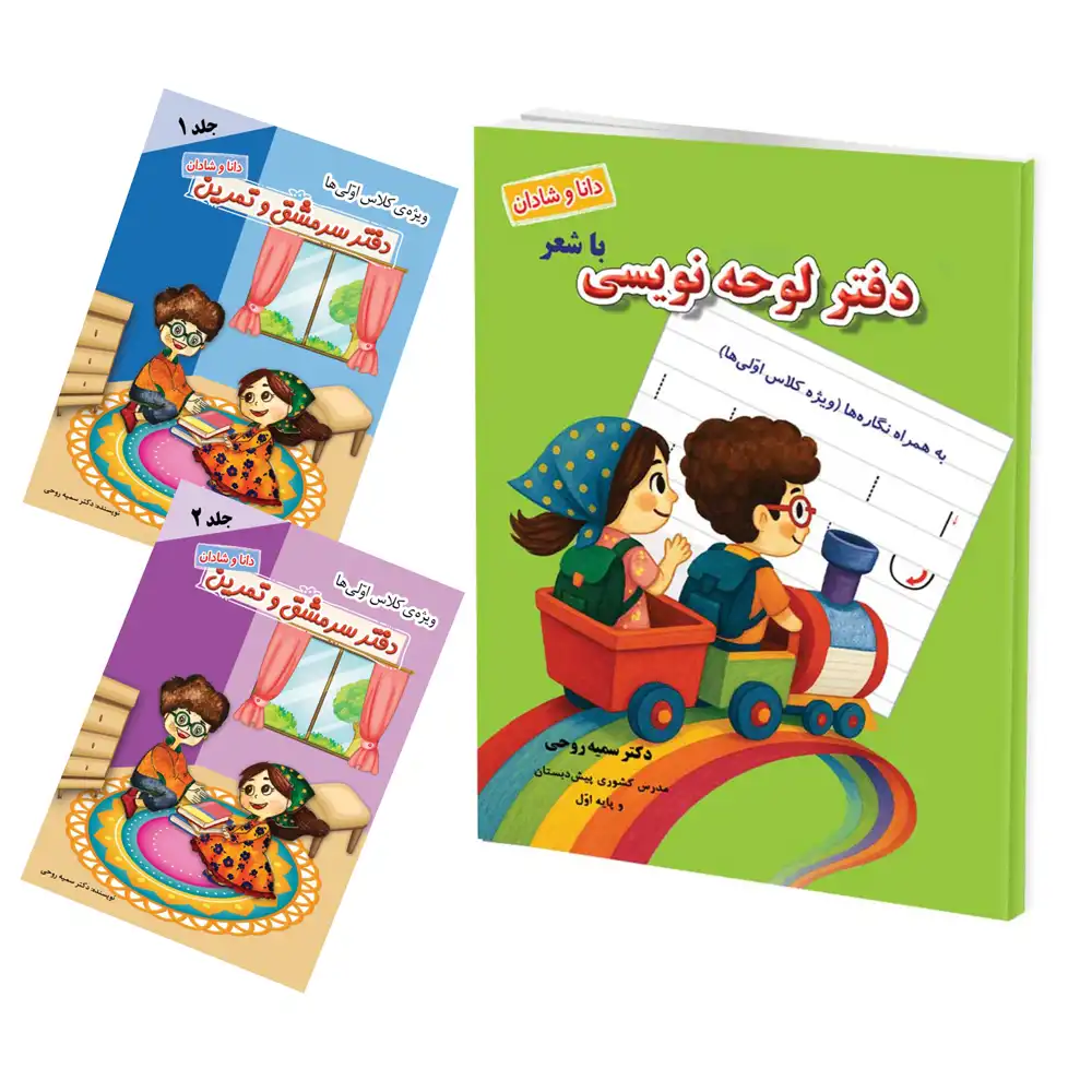 مجموعهی آموزشی «دفتر سرمشق و تمرین به همراه لوحه نویسی و نگاره ها» ویژه پایه اول دبستان با تالیف دکتر سمیه روحی